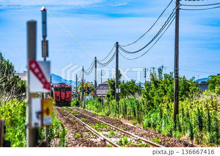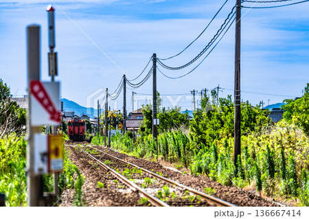 夏の境線 和田第3踏切付近を走る米子駅行き普通列車2 鳥取県米子市