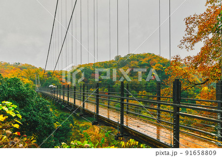 鬼の舌震。舌震”恋“吊橋 雨模様(島根県奥出雲町)