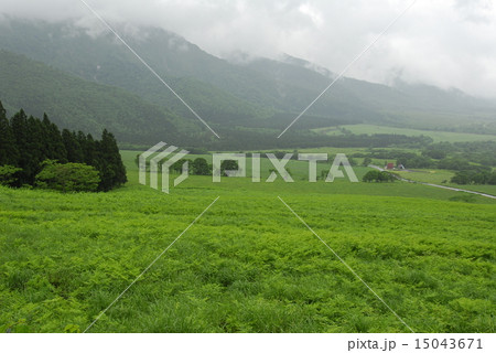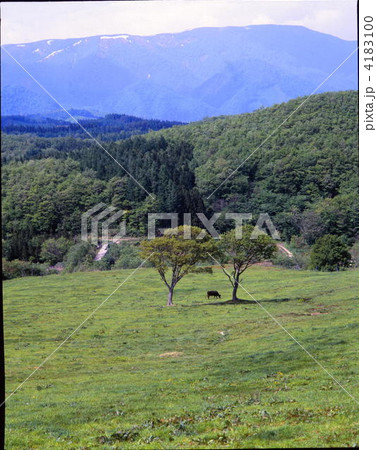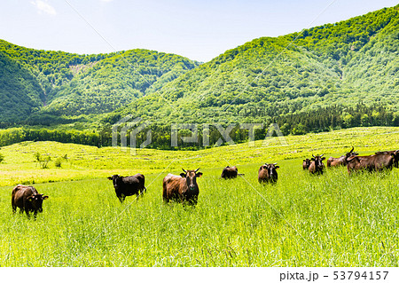 高原の牧場と放牧牛 宮城大崎市営鳴子放牧場