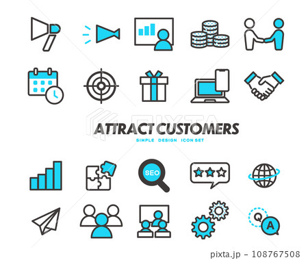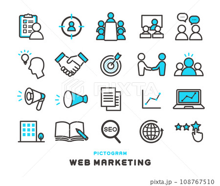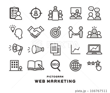 マーケティングに関するピクトグラムアイコンのベクターイラスト素材