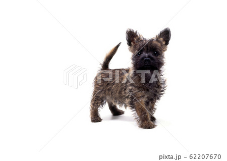 見つめる子犬 ケアンテリア 白バック