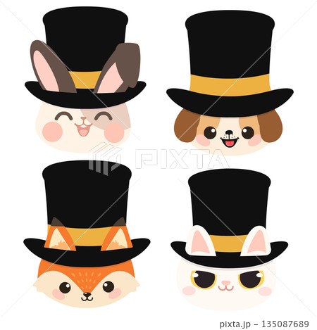 Collection of Cute Cartoon Animals Wearing Elegant Top Hats