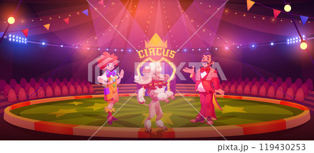 Circus stage with artists inviting to performance