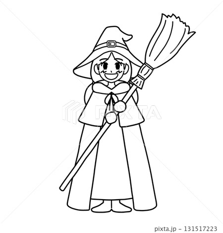ハロウィン用/クラシックな魔女衣装を着た魔法使いの女の子【線画のみ】