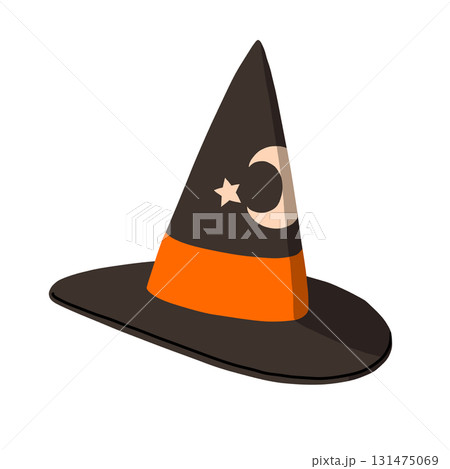 ハロウィン用/月と星の模様が描かれた華やかな魔女のとんがり帽子【主線あり】