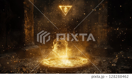 三角形と魔力が浮かぶ召喚の間