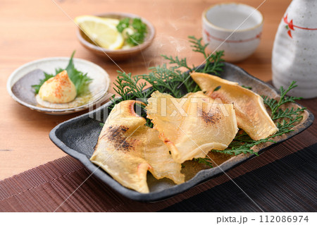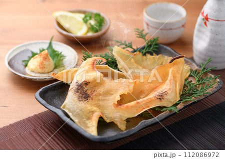 こんがり焼いた エイヒレと日本酒