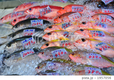 海鮮市場・魚市場の魚がたくさん並ぶ鮮魚売り場
