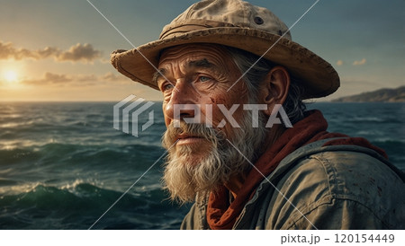 Weathered Fisherman Portrait. Rugged Features and Piercing Gaze generative ai