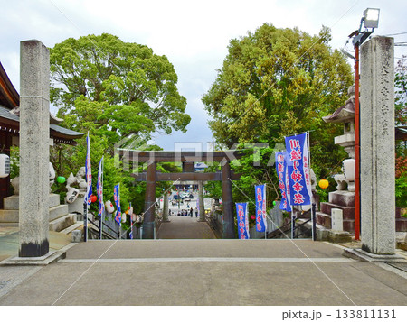 福岡県田川市の川渡り神幸祭が開催される風治八幡宮参道と鳥居