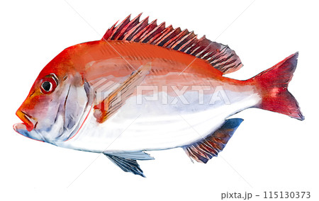 日本の祝い魚、若くて活きのいいマダイのリアル調切り抜きイラスト