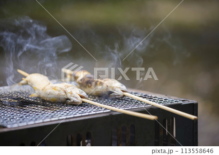 バーベキューで鮎の塩焼きをするイメージ