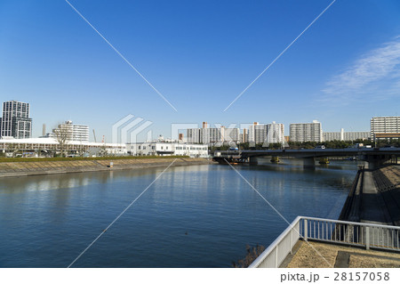 東京都市風景 鮫洲 品川区 大井 再開発エリア 運河 団地 快晴 青空