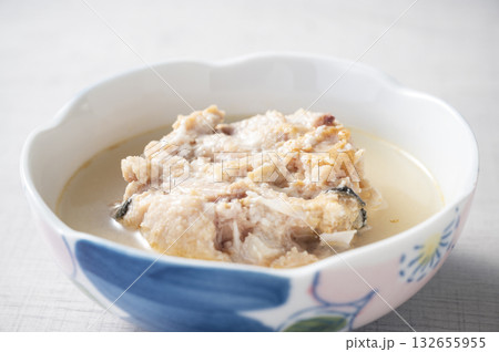 和食器に盛った鮭の中骨缶詰