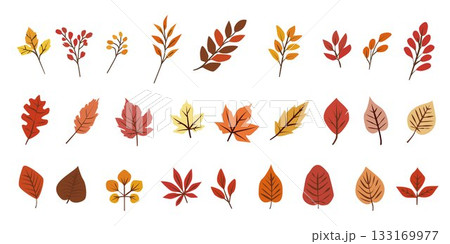 カラフルな秋のリーフデコレーションイラスト、秋の紅葉と落ち葉の装飾ガーランド