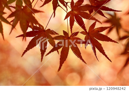 秋の紅葉、真っ赤なモミジ、秋、季節の移り変わり
