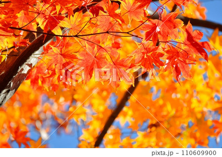 【紅葉素材】紅葉したもみじと青空【長野県】