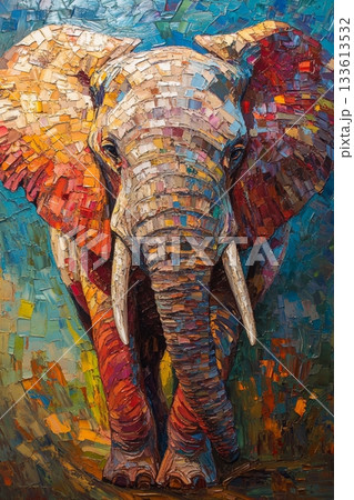 色彩豊かな象の油絵風アート/厚塗りテクスチャで描かれたカラフルな動物イラスト