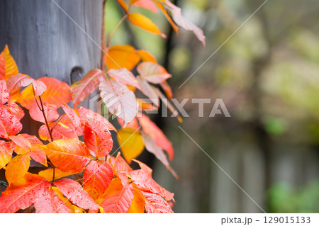きれいな紅葉が絡まる柱