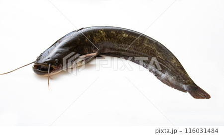 ナマズ、ニホンナマズ、マナマズ、白背景でスタジオ撮影