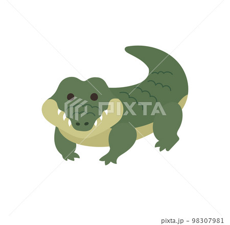 Cute alligator animal. Cartoon crocodile characters, funny childish alligators activity reptile mascots, cheerful wildlife zoo flat crocodiles. Vector animals isolated set