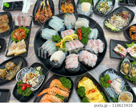 Seafood sashimi and fish platter, Japanese food