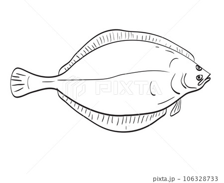 Flounder sketch. Flat ocean fish. Sea bottom animal