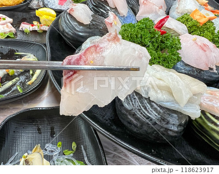Korean seafood dish. raw fish Sashimi