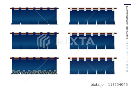 シンプルな暖簾のイラスト素材セット ベクター のれん 白背景