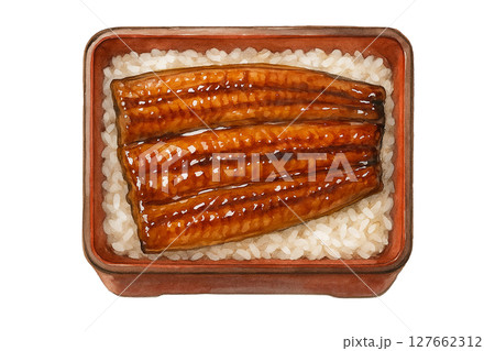うな重の水彩風イラスト(手描き風・白背景・土用の丑の日・和食素材)