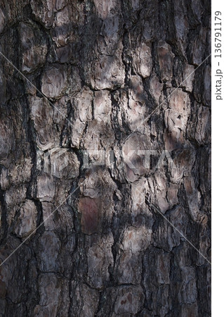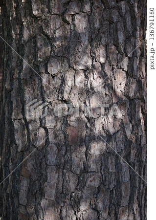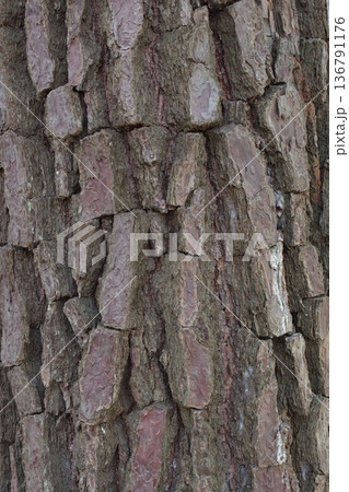 鱗片状の割れ目模様のマツ科の樹皮 2