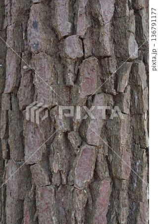 鱗片状の割れ目模様のマツ科の樹皮 5