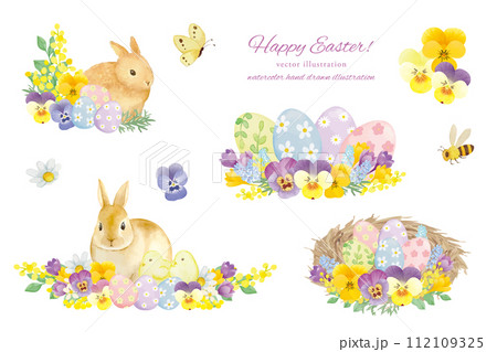 水彩で描いたイースターエッグのかわいいイラスト素材