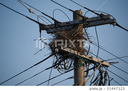 鳥害対策された電線電柱