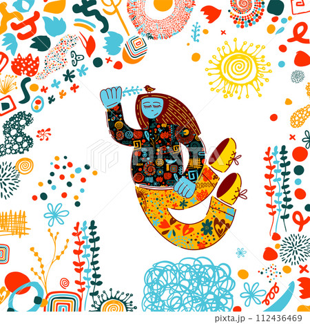 Dancing and Jumping girl. Trend illustration. hand drawing. Not AI, Vector illustration