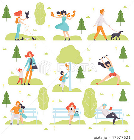 People Walking, Doing Sports, Relaxing in Park, Men and Women Spending Time and Relaxing on Nature