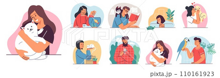 Set of people love their animals