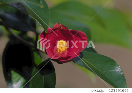 照葉樹林の樹木 ツバキ科ヤブツバキの赤い花