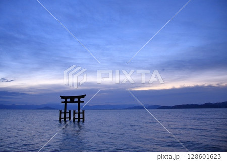 湖上の鳥居 滋賀県琵琶湖 白髭神社の日の出