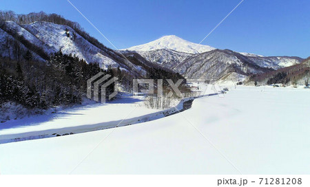 空撮素材 鳥海山 ダムに沈む百宅地区
