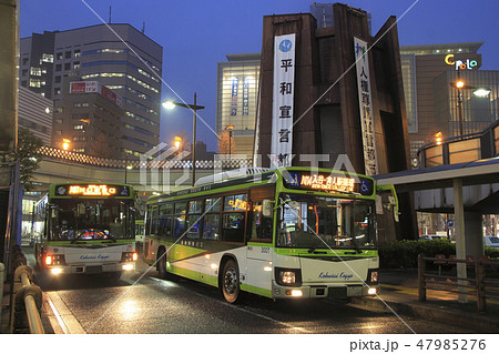 川口駅東口に停車中の東武バス(草加市制60周年)