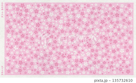 桜の花びらが舞う春の背景、桜色の耳付き和紙