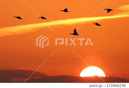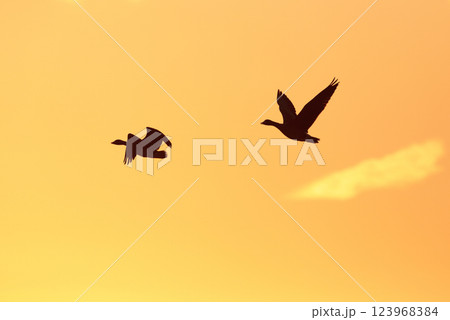 鴈と夕焼け