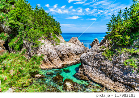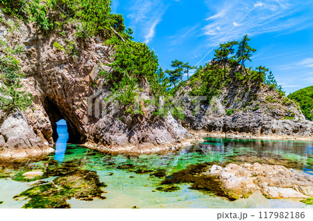 夏の鳥取県浦富海岸 鴨ケ磯の水尻洞門
