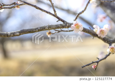 鴬宿 鴬宿梅 白梅 梅林 春の花 素材