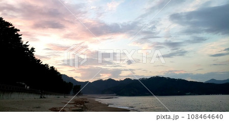 夏の岩手県釜石市根浜海岸の夕暮れ【8月】