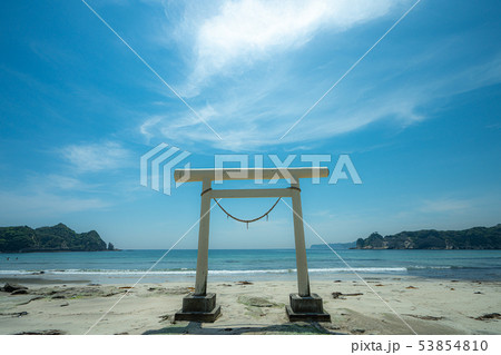夕暮れの八坂神社 一ノ鳥居(白い鳥居) 千葉県勝浦市鵜原海水浴場