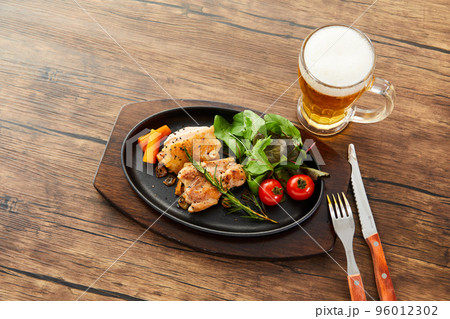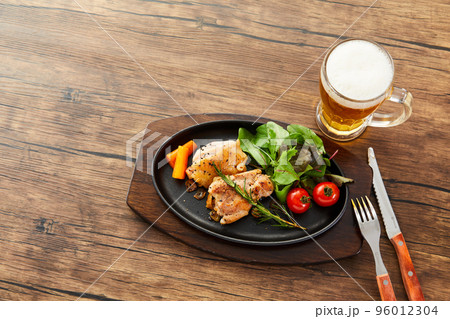 チキングリルとビール 鶏のガーリックグリル チキンステーキ