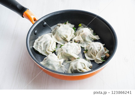 フライパンで焼く春菊の焼売