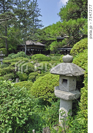 本間家・別邸 清遠閣より庭園を望む 石灯籠と井戸など 本間美術館